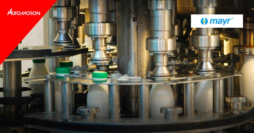 A embreagem de aço inox ROBA® contitorque foi desenvolvida pela Mayr® para aplicar tampas pré-formadas com rosca de plástico e permitir que se fechem firmemente, mas que se abram com facilidade quando estiverem nas mãos do consumidor mais tarde. Por isso, os fabricantes de máquinas confiam nas embreagens de histerese da Mayr® para fechamento de tampas em envasadoras de garrafas plásticas.