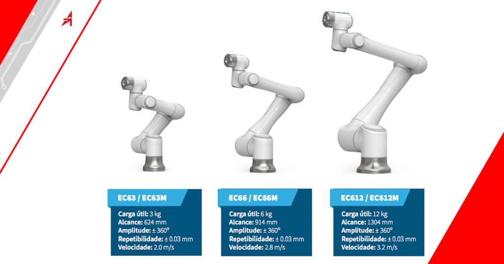 Para além das características próprias de um robô industrial com velocidades lineares até 3,2 m/s e repetibilidade de posicionamento ± 0,03 mm; os robôs colaborativos Elite apresentam ainda:
