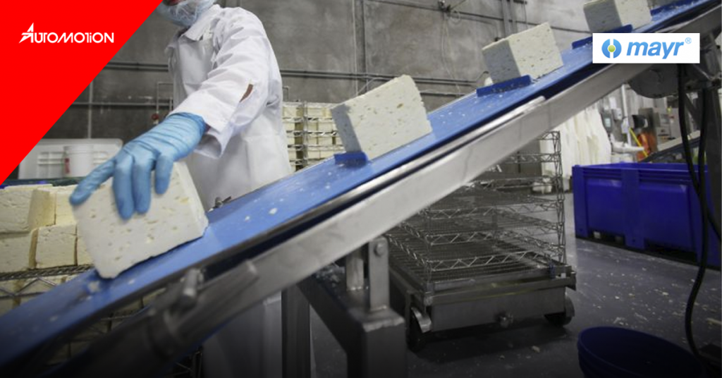 A França é famosa por sua culinária e seus queijos, mas também pela maturidade das suas plantas de produção. Um fabricante francês de linhas produtivas para o processamento de queijos e outros produtos lácteos escolheu a confiabilidade dos freios lineares Mayr® da unidade Mauerstetten – Alemanha – para suas máquinas. Esse sistema de freios é protegido contra corrosão e capaz de suportar facilmente as condições de aplicação na indústria de alimentos. Quando o sistema de transporte é vertical, por exemplo, esses freios da Mayr® garantem que as rodas pesadas de queijo não caiam.