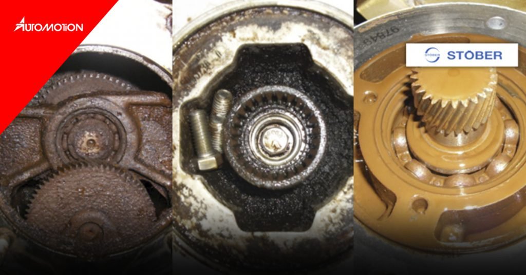 Água e produtos químicos de limpeza podem entrar nos redutores através das vedações de saída, dos anéis entre o motor e o redutor, respiradores, e orifícios de drenagem do óleo. Quando líquidos são retidos no redutor, isso pode causar danos devastadores aos componentes internos e também à lubrificação.