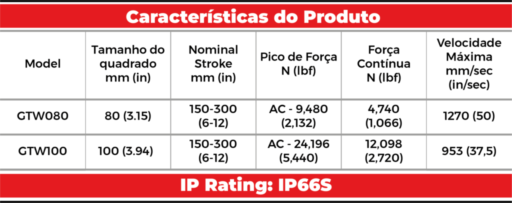 Os atuadores da série GTW oferecem benefícios nas situações onde os contaminantes estão presentes em aplicações de soldagem por pontos. Os designs especiais, tanto da vedação, quanto do limpador, evitam que contaminantes se infiltrem nos componentes mecânicos e elétricos do motor. Estes designs exclusivos e cuidadosamente pensados minimizam o tempo de parada para manutenção, maximizando a eficiência e a vida útil dos componentes do fuso de rolos invertidos durante os milhões de ciclos de trabalho necessários para garantir inigualável produtividade.